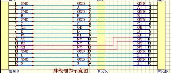 控制卡上面有R1 R2 R3 R4 ......而单元板上一般只有R1 或者(R1 R2)。应该怎样连接呢?