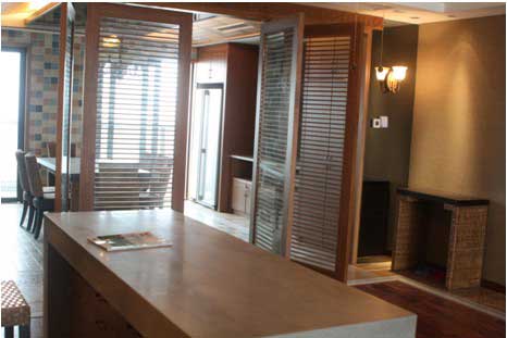 餐厅用一扇原木的镂空屏风与客厅分隔开来,仿古的地砖拼花,棕色的纯实木材质的橱柜、藤制的餐椅,散发着古典主义的深沉。拿出万能遥控器,按下用餐模式,餐桌上方灯光马上调到最亮,轻缓的音乐也响起。您还可以设定、选择多种模式,每一种模式下都有根据情景设置好的灯光、音乐等背景,而这一切只需遥控一键就可轻松实现。