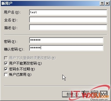 在右边的树形目录中右击“组”-“新建组”,添入“组名”,点“添加”在弹出的“选择用户”对话框中,点“高级”-“立即查找”,选择刚才建立的“TEST”用户,把用户加入刚才建立的组,如下图;