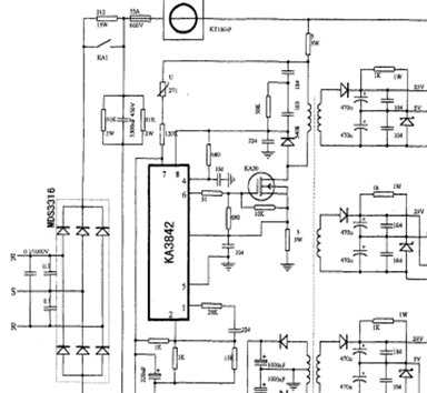 将变频器主电路——三相整流输入电路和三相逆变输出电路、开关电源电路及驱动电路画到同一张上的电路图,这也是唯一的一张,尤其是将驱动IC与IGBT模块的直接连接电路,这给不习惯将分立原理图合并起来看(作原理分析)的读者提供了诺大的方便。