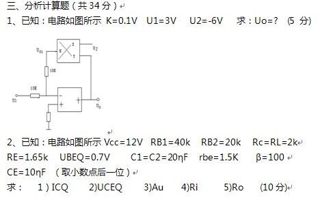 模拟电子技术 大学期末考试题及答案(三)