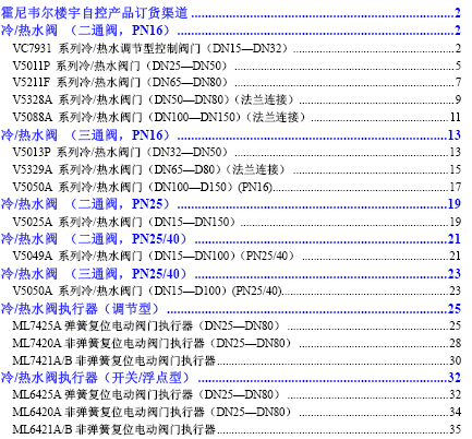V5025A 系列冷/热水阀门(DN15—DN150).......................................................................19