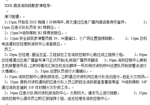 高级别酒店XXX酒店消防疏散参演程序(DOC 18).doc
