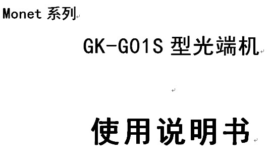 本使用说明书主要描述GK-G01S型光端机的功能及使用说明。