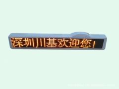 名称:出租车无线LED顶灯屏型号:CJ-16128P7.62R-TAT-PDER1、点间距长6mm,高7.62mm,字大效果好。2、显示颜色单红。3、分辨率高16点、长128点。4、单行显示8个汉字或ASCII字符,可存储256条信息,每条信息128个汉字或ASCII字符。支持各国家语言显示。5、完全满足车载宽电压要求,电压范围可达DC9V-36V;6、标准通用接口协议RS232/RS4857、全天可分4个时段进行16级亮度调节。8、高亮度、高对比度,在阳光直射情况下仍能清晰显示,完全适应户外光线亮度。9、播放节目的优先权功能:按优先的先后顺序为:第一级是报警信息,第二级是即时信息,第三级是广告信息,第四级是默认信息如招商电话等。10、支持在线软件升级功能,方便产品性能的更新。11、采用CRC效验,断点续传,FLASH保存中间结果的方式,保证通讯可靠性。12、实现远程和ACC开关机功能(停车熄火后可实现关屏功能减少耗电)13、实现信息生命周期设定功能(可设定各条信息的发布时间)14、使用塑胶外壳整体成型的超薄设计,美观,坚固,并便于维护。15、采用可活动式安装支架,方便安装维护。16、采用代码式控制协议,控制数据流量小,适用于GPRS/CDMA等网络的远程控制,可以联接GPS设置实现无线远程控制。17、通过国家电子计算机质量监督检验中心和深圳职业技术学院汽车与交通学院电源极性反接性能、电源过电压性能、电火花试验、ISO7637电磁瞬变抗干扰性性能、振动性能、冲击性能等多项车载电子产品性能指标的严格测试,完全满足车载使用环境的要求。18、采用大模块的设计方式,克服了一般小模块方式所产生的灯面不平、角度不一致、马赛克及不便于后期维护等缺点,更好地保证了LED屏的显示效果,更方便于维护。19、采用恒流LED驱动方式,确保了产品亮度的一致性。20、采用多重安全性能保护措施包括电源输入端的过流保护、内部电路的自动保护,确保汽车电路的安生性和设备的可靠性。21、播放时段设置功能:每天可以分24个时段定时播放,时段可以精确到秒。22、可调节播放速度和显示停留时间。23、具有上电延时功能,失控保护功能和心跳信息回传功能。24、具有防水,防潮,防雾等功能。详细技术指标硬件技术指标: