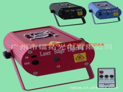 Mini Laser Stage Light User ManualThank you for using our products .For the sake of safety and better operation of this stage light, please read this manual carefully before using and operating it, lest incurany personal injury or damage to the stage light.Package List:1. Stage Light 1PC 2. AC power supply 1PC 3. Owner’s Manual 1PC 4. Tripod 1PC 5. Remote control 1PCBasic Operations:Power On: connect to power, press ON/OFF button to make the stage light work.Power Off: press ON/OFF button to turn it off when the stage light is at work.1.Speed adjustment: press MOTOR button firstly, the rotating speed slows down; press secondly, motor stops rotating; press thirdly, motor speed recovery to the initialsetting.2.Strobe function: press STROBOFLASH button firstly, the laser will flicker every 0.5 second; press secondly, the laser will flicker every 1 second; press thirdly, thelaser will be on steadily.3.Audio control: press MUSIC AUTO button, enter the Audio control mode, the laser flickers with the rhythm of the music. press again, return to automatic mode.4.Remote control: the supporting remote control can control related functions of the stage light.Notice:1.Please operate the stage light according to the manual strictly.2.This unit is intended for indoor use only and should be prevented from water, moisture and shake.3.The working temperature of this unit is 15~30°C, and it must be powered off after continuously working 2 hours to let the laser diode cool down.4.To keep the body of this unit clean to avoid any unnecessary troubles.5.Do not turn on and off it frequently and try to avoid making it worked for a long time.6.Do not use the telescope to watch the laser rays, otherwise will be largen the dangers.7.You had better use the original package during the transportation.Warnings:1.The grade of the laser for it is Class lllB, and will be dangerous if exposure to the eyes directly.2.The working voltage is AC110~ 240V/50-60HZ,once exceeded this range its lifetime will be shorten.Statement:All the stage light are examined strictly before shippment, in that case the user should operate it according to the manual strictly. we and the distributor will not beresposible for any mistakes cause by the wrong operations.Specification:1. Power: AC power supply input AC110 ~ 240V / 50 ~ 60Hz, output DC5.0V/ 1A.2. Laser generator: wavelength 532nm, power 50mw; wavelength 650nm, power 100mw.3. Dimension: 120 * 92*52mm.4. Weight: 0.5 KG