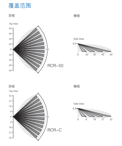 探测距离 15.2米 X 90° 10.7米 X 90°