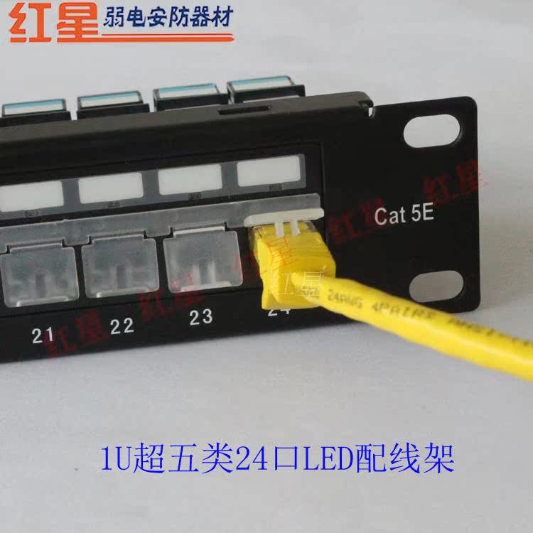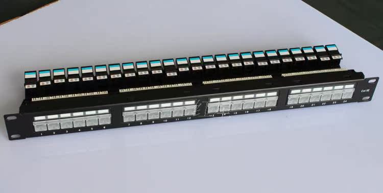 规格:19英寸(48.3cm)1U24口配线架 非屏蔽 cat5e 超五类配线架 后面的理线托架可拆卸