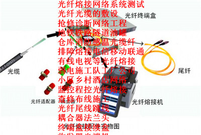 2、光纤跳线、光纤尾纤,藕合器,光纤合,光缆终端盒,ODF单元箱、光缆接续合,光纤熔接,室外防水箱,光缆交接箱等;