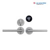 圆形读头盖合上后与锁体组成一体,超薄设计; 表面颜色采用扫镍+不锈钢经典搭配;装饰圏采用模内IML成型,用于显示内部感应红灯、蓝灯;把手表面采用不锈钢材质,经久耐用,提高了表面的耐磨使用;极简的轮廓与鲜明的材质对比凸显严谨、可靠的特性。作为一款现代主义风格极强的酒店锁,理性的线条以及明显的功能区域划分更显其特征。