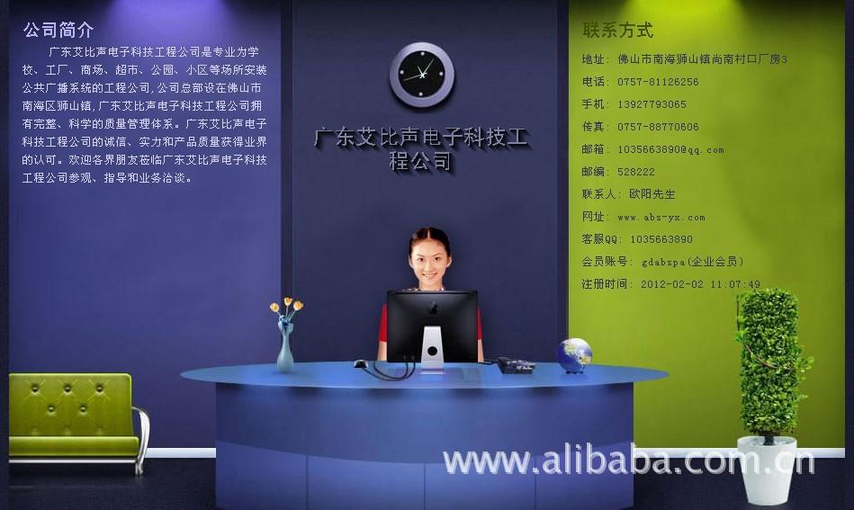 广东艾比声音响器材厂, 秉承以人为本,高效创新,客户至上,信誉第一的企业精神,营造诚实、诚信、务实的企业文化氛围,全面贯彻重质量,讲信誉的企业生存理念,努力以最完美的品质,最合理的价格,最完善的服务回馈社会。公司从事公共广播设备的开发、生产、销售及售后服务,是国内开发、生产智能广播的高科技企业之一。