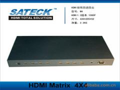 用户手册matrix切换分配器使用手册产品规格: HDMI 4X4/4X2/2X4/2X2引言尊敬的客户:您好!非常感谢您购买本公司的产品。为了实现产品的最佳效果和保证安全,请您在对产品进行连接、操作、调试前仔细阅读本手册。此手册请予以保留,以备将来查阅。本公司所生产的HDMI转换器、切换器、网线延长器、矩阵、分配器等系列产品,其设计之目的是为了让您的影音设备使用起来更便捷,更舒适,更高效,更节能。这款HDMI切换分配器可以把四路高清信号源连接到两个高清显示终端。它可以很容易地将四路高清信号中的任何一路所产生的高清信号分配到两台支持高清信号的显示器或者投影机上。另外,把它接在一根HDMI线的信号输出端时,可对HDMI信号进行放大。本公司所生产设备为以下应用提供解决方案:如对噪声、传输距离及安全有限制的场所、数据中心控制、信息分配、会议室演示以及教学环境和公司培训场所。真诚服务是我们的理念,顾客满意是我们的宗旨。本公司将以最优惠的价格提供给客户最好的产品,并竭诚为客户提供优质服务。产品简介产品特点:l四路HDMI1.3b版本信号输入分配成二路HDMI1.3b版本信号输出l兼容HDCP1.2l支持CECl支持30/36位深色l支持蓝光DVD24/50/60fs/HD-DVD/xvYCCl音频格式DTS-HD/Dolby-trueHD/LPCM7.1/DTS/DOLBY-AC3/DSDl支持信号时序重整。l使用AWG26 HDMI 1.3版本的标准线缆,输入传输距离可达15米,输出传输距离可达20米。l输入端直接摁按钮进行控制。l无信号损失l安装简单l需要DC5V/3A规格的电源随机配送附件图示:1、5V电压电源适配器2、说明书一份3,遥控器电源适配器