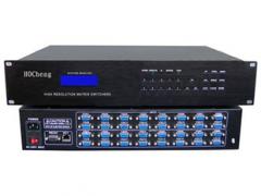 唐刚13632737730VGA矩阵切换器:HOC-VGA1604产品概述:昊诚(HOCheng)品牌VGA矩阵切换器系列是专门为计算机及视频设备显示信号以及高分辨率VGA数字图像信号的显示切换而专业设计的高性能宽带智能矩阵开关设备,输出带任何路分配功能,可将多路输入信号任意选择一路输出或多路分别输出给一路显示设备,也可将一路输入信号任意选择一路输出或多路同时输出。该系列产品可广泛应用于大屏幕投影显示工程、多媒体教学、报告厅、指挥控制中心、酒店、多媒体会议室、影音展示厅等场合。功能特点:路由规格:16进4出16路VGA电脑信号输入;4路VGA电脑信号输出,可完全交叉切换;16路音频输入, 4路音频输出;可与视频同步或者异步完全交叉切换 (可选配) ;采用最新32位ARM9内嵌式处理器;采用500M高带宽芯片,具有长线驱动功能;自主开发高分辨率显示设计电路采用信号长距离传输失真增益补偿技术;采用数字同步识别处理(DSIP)技术内置轮循切换功能,能任意设定间隔时间和通道内置16组场景存储功能,能直接在面板或者红外线遥感操作采用可编程逻辑阵列电路(FPGA),性能更稳定;电脑视频输入和输出端采用HD15PIN(VGA)接口;特有TCP/IP网络控制管理功能,能通过以太网控制;(可选配)采用液晶显示屏,可显示设备各通道的切换状态、输入信号特性等信息,直观方便本产品带有断电现场切换记忆保护、LCD液晶显示、音视频同步或分离异步切换等功能本产品是具有高可靠性的智能设备,设计中采用容错技术,并采用了高抗干扰能力的通信接口电路,保证了通信的可靠性,具有红外遥控功能和RS232通信功能,用户可以方便的完成演示过程中的信号切换;具备RS232通讯接口,可以方便与电脑、遥控系统或各种远端控制设备配合使用;兼容市场所有同类产品的代码和指令;国际通用宽电压设计,可适应交流110~240V,50/60Hz;高品质、大批量生产,有较高的兼容性和稳定性,可设置ID地址实现多机级联,最多可以级联255台矩阵控制方式按键控制:通过面板按键直接切换;红外遥控控制:使用红外进行遥控切换;昊诚矩阵管理软件:由专用矩阵管理软件控制,连接接口可以使用RS232接口或TCP/IP接口(可选配);触摸屏控制及面板:使用可编程触摸屏或者面板连接即插即用;