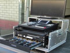- 与传统的CCU一样,使用一条独立的电缆,包括数字视频、摄像机控制通道、语音通话通道、状态与提示通道、返送视频、音频通道、电源供应通道。其中的关键技术是 :1、由系统通过综合电缆向摄像机供电,采用绝对安全的低压直流供电技术,终点输出功率大于50W,满足所有肩式ENG摄像机需求。最大供电达到距离300米。2、综合电缆高清视频传输距离达到100米(标清200米以上)。这个距离可以满足演播室和移动箱系统EFP制作的需求。最新开发的光电混合电缆,以单模光纤传输数字高清视频,传输距离30千米,电缆直径只有10mm。3、采用了新型的传输技术,由系统向摄像机提供返送视频信号(高清Y信号或标清复合信号),传输距离200米。4、内置数字语音通话系统,TALLY提示系统,返送音频和广播音频功能。所有数据与摄像机控制数据一起编织后传输,电缆的数量压缩到最低。数字语音达到CD音质,支持呼叫和各种通话控制。支持双色提示灯显示。5、专门应用于现场的摄像机控制面板RCU-01,可以控制摄像机光圈,底电平,增益,快门,调色,白平衡等功能。由于采用了更先进的嵌入式操作系统设计,新型的控制器功能设计更合理,质量更可靠,维护更方便。也可以在国内技术的支持下升级,或进行针对用户的专门功能制造。控制摄像机型号覆盖所有现存索尼、松下肩式ENG摄像机。设备与功能:1、MS200系统控制主站:完成数据编织,通话控制,提示译码,返送视频与音频载入等功能。其中数据编织、返送视频是按讯道配置,每增加一个讯道,就增加一个模块。■ 通话功能具体说明通过主站和分站的调节和设置,可以实现以下通话功能:1)主站与8个分站可以分别或同时双向通话;2)主站与8个分站可以单向通话,分为两种情况:主站声音分站可以听到,分站声音主站听不到;分站声音主站可以听到,主站声音分站听不到。3)主站的语音可以通过麦克风输入,也可以通过鹅颈话筒输入;通过鹅颈话筒输入时,主站通过扬声器听分站的声音。4)主站的语音可以通过扬声器广播给现场的工作人员;5)节目音频可以返送给分站;6)主站处可以调节主站听到的总音量;若与多路分站同时通话,可以单独调节其中某一路或某几路的音量,以达到平衡的效果;7)分站处可以调节分站听到的总音量;8)主站处可以调节广播的音量;9)主站处可以调节分站听到的返送音频的音量。2、PW120摄像机电源主站:所有摄像机电源都集中在这个设备中管理,可根据传输距离调节电源的档位,并配合不同规格的电缆。根据讯道数量,配置电源模块。3、CS200控制器主站:考虑到多个控制器要与一个系统控制主站连接,故采用数据编织的方法,将多个控制器的数据编织起来再传输,这样移动箱之间的连接只需要一条电缆。如果电缆连接没有限制,也可以RCU直接连接主站。这样,每连接一个RCU需要多连接一条控制器电缆,但可以节省一台主站的费用。4、BP200摄像机适配器:给摄像机供电;数据解编织并控制摄像机;通话分站与提示信号输出;返送视频和返送音频输出。在系统清单中,CH200由BP200与TU200(讯道编织板),VB200(返送视频板)组成,每增加一个讯道,在MS200中增加一套TU200和VB200电路板,同时增加一套BP200适配器。5、RCU-01摄像机控制器:通过系统连接或直接连接至摄像机,对摄像机的控制与传统CCU完全一致。目前全世界仅我公司能够读懂原厂协议并具有试验手段,实现松下、索尼摄像机所有控制功能。操作窗特写相对于原厂的小型控制器RCU-01具有独立的显示窗显示详细的操作细节,根据数据使调整更加准确。在外观方面RCU-01具有适合EFP应用的长条型结构。6、铠装光纤:铠装光纤是在普通光纤基础上,包裹了铠甲保护层,是光纤具有抗压,抗拉,抗弯曲等环境适应能力。铠装光纤的外径只有3mm.7、光电复合电缆:光电复合电缆是将铠甲光纤,数据电缆,电源电缆一起加工成一条独立的综合电缆。其中,包括单膜铠甲光纤(能够传输数字视频30千米);数据电缆(三对双绞线,能够传输E1通讯数据2千米,返送视频300米);电源线(传输50W功率电源300米)。复合电缆总外径10mm。8、Tally灯:专门设计的提示灯可以安装在摄像机热靴上,具有红黄双色提示功能,由适配器BP200输出提示驱动信号。9、液晶寻像器:液晶寻像器是专门为系统配套开发,作用是能够显示本机和返送视频二种信号源(模拟复合),并且能够在摄像机伺服手柄上被切换。寻像器的规格为16U9,适应高清视频制作的要求。