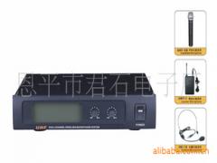 FeatureDual channel fixed frequency wireless microphoneWorking at low interference UHF band (600-865MHz)14 frequencies availableLCD display working statueSmart handheld microphone and rugged half rack size receiver.Reliable SMT technologyDual filter design makes better anti-interference abilityExternal TNC rubber antennaHigh performance capsuleEach channel has individual volume control.Balanced and line output available.Specifications: