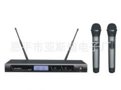 热诚欢迎国内外客商来电洽谈经销,OEM合作等业务。ST-9300 300米超远使用距离分集无线麦克风(金属手咪)特点:1.采用真分集接收技术,空阔最大使用距离300米2.使用UHF780-865MHZ频段,避开干忧频频3.采用低电压设计,电池电压低到2V仍可以工作4.麦克风具有低电指示电路,提示更换电池5.设有回输啸叫抑制减弱功能,能有效减少回输啸叫6.适用于大小舞台,会议厅,KTV包房等参数:振荡模式: 石英晶体振荡稳定度: <30ppm灵敏度: 2dBu(sinad=12 dB)最大频偏: 50KHz信噪比: >90dB失真度: <0.5% @ 1KHz镜像干扰: 大于80 dB邻频干扰: 大于80 dB频响范围: 40Hz~16KHzA静噪控制方式:v多重静噪电路电源:13~18V DC发射:发射功率: 10mW谐波功率: <40dB电池电压: 1.5v*2电池寿命: 10 小时