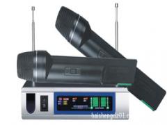 技术参数载波频段: VHF-H频率响应: 80Hz-15kHz频率稳定度: ±0.005%信噪比: >70dB失真度: <0.5% (1kHz)频道数: 两通道使用距离: 空旷地带50米接收机:静音控制: 锁杂讯接收灵敏度: -80dBm假像干扰比: ≥80dB接收机供电: DC 12V/300mA输出方式: 独立及混合自动选择发射器:频偏: ±18kHz频率稳定度: ±0.005%调制方式: FM发射功率: ≤10mW发射器供电: 9V层叠电池 (手持)AA1.5VX2 (领夹)标准配置? 接收机 1台? 手持麦克风发射器 2支? 领夹式麦克风发射器 2套? 领夹式麦克风发射器 1套+手持麦克风发射器 1支? 音频输出线 1条? 变压器 1个? 说明书 1本? 9V电池 2节? 彩盒配防撞泡沫盒包装 1个麦克风的操作1.手持麦克风: 按逆时针方向旋开发射器尾管,装入9V层叠电池(注意电池极性不能接反),然后顺时针旋紧尾管;领夹发射器:按发射器上所标示"OPEN"字样处, 打开电池盖,然后装入电池,注意电池的正负极不能接反;2.将电源开关推至"ON", 如电源指示灯不亮, 应检查电池电压是否不足或电池极性是否接反;3.将电源开关推至中间档时,手持麦克风将关闭拾音功能,抑制噪音通过接收机;4.将领夹麦克风或头戴麦克风的插头插入发射器的"MIC"插孔内;5.若长期不使用,请将麦克风内电池取出,以免电池漏液而损坏麦克风。--------------------------------------------------------------------------------接收机的操作1.将电源适配器插头插入供电插座,注意电压是否是交流220V/50~60Hz;2.打开电源开关,电源指示灯亮;3.拉出天线A和B,使之与机体成90度角;4.音频输出的连接:本接收机音频输出采用自动选择输出电路,如果需要混合输出,则只要用一条音频输出线与任何一个输出插座连接即可。如果需要独立输出,则需再连上另一音频输出线即可;5.当手持麦克风或领夹发射器开机后,接收机"RF"信号灯亮,接收机输出音量大小,可由音量控制旋钮调整;6.若长期不使用请拔出电源转换器。--------------------------------------------------------------------------------注意事项1.接收机的安装离地面要高于一米,距墙面要大于一米;2.主机使用时应避免放置到死角的地方以保持信号接收状况良好;3.使用手持麦克风时,请勿抛.摔.扔.丢,以免造成严重损坏;4.机体应避免直接日晒雨淋,尽量远离电磁场;5.没有经过厂家授权同意,用户不得擅自对机体内部做任何的修改和变动,修改或擅改系统内部配件可能导致机器不能正常工作,并可能使保修承诺作废;6.请勿自行拆卸,内有可能伤及你身体的高压;
