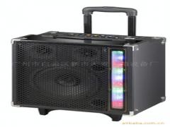 1.单8寸超重低音的箱体设计,超强的功能设置,低音深沉有力,高音喇叭采用全长冲程号角高音,整个音色明亮清晰,带USB/SD功能,带EQ均衡调节,带跑马灯.2.音箱适合外出移动使用,内置可充电12V直流干式电瓶,在正常使用时就自动充电,一次性充电完成后可以在户外使用4个小时,方便使用。箱体设计小巧、美观、轻便,并且设计合理.高低音配套完美!3.有拉手,极度的方便携带与走动!4.音箱面板设计人性设计.两路供电,一路由音箱内部的电瓶供电,另一路是直接插220V电源插板,在正常使用时可以直接充电,在不用200V电时可以由内部的电瓶代替220V电源正常使用!面板上同时设计有电源开关和充电插座、充电指示灯。面板上音频输入口设计为R/L莲花通用插座,可以插MP3、MP4、CD、VCD、DVD、电脑等音源设备。5.箱体全部采用进口中纤板精巧制作,面部全部贴高贵的黑色木纹PVC,外观大方.用 途:●户外唱歌、舞台演出、吉它表演 ●商场超市宣传促销活动、 ●晨练 ●公园广播 ●企业单位晚会、会议厅、教学讲座使用 ●郊外活动、夏令营等.温馨提醒:1.请你收到后对主机蓄电池充电4-6小时,可连续性使用4小时,以后每次主机使用完毕,蓄电池充电6-8小时,可保证蓄电池.以及电源的使用,并保护蓄电池寿命。2、主机长时间不使用,没三个月必须充电12小时以上一次,否则会影响蓄电池寿命3、在主机的侧部,使用规格的12V 12Ah蓄电池,蓄电池按照正确的方法使用以及维护,可以重复充电使用500次。4、特别提醒:本款音箱有磁性和蓄电池,普通快递过不了机场安检,只能够发物流.产品参数: