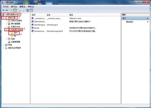 - 在左侧的控制台树依次展开到“计算机管理(本地)――系统工具――本地用户和组――用户”