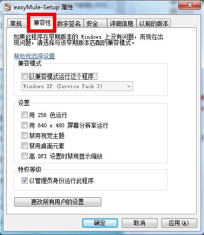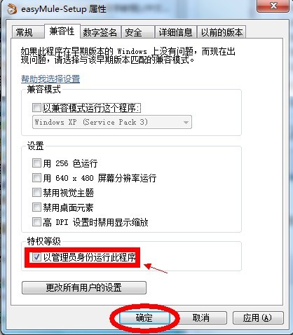 - 在特权等级栏下勾选“以管理员身份运行此程序”,单击“确定”