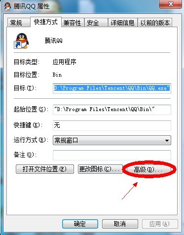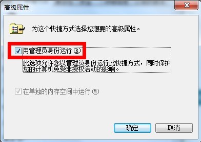 - 在“高级属性”对话框中,勾选以下“用管理员身份运行”的选项