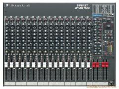 Soundcraft 声艺 FX16Ⅱ RW5757 详细介绍:数码音响的音质最多可接26组输入信号16组话筒线路输入专利设计的ultramic前置放大器内置广播级的lexicon莱思康效果器,双效果,可编程,可修改参数16组直接输出,可选择推子前或后,用作多轨录音或效果送出3段英国风味的均衡器,中频可选项18db的高通滤波器4组母线4组立体声输入100mm专业推子+48幻像供电通道输入、编组和主输出都设有插入点独立音量控制的单声道输出接线通盘可以改变位置,配合不同的安装方式可以安装在19"机柜技术指标:噪声:话筒等效输入噪声@最大增益,20hz-20khz带宽,150欧姆输入源阻抗-129db;辅助,主输出和总控部@最大,16路输入的推子拉下来<80db串音(@1khz):通道哑音<96db;推子拉到底(相对0标志)<90bd;分配隔离度<96db;辅助送出点关掉<84db;频率响应:话筒/线路输入到任意输出20hz-30khz<0.5bd;(thd)总谐波失真和噪音:话筒灵敏度-30dbu,+14dbu@;全部输出@1khz <0.009%输入和输出阻抗:话筒输入1.8欧姆;线路输入10k欧姆;二轨返回(非平衡式rca接口)12k欧姆;立体声返回输入(平衡式插口)10k欧姆;主输出,辅助及的插接点7k欧姆;输入、输出点电平:话筒最大输入电平+22dbu;线路最大输入电平>30dbu;立体声最大输入电平>30dbu;耳机@200欧姆150mw尺寸(高×宽×长,毫米):放在桌上,160×444×60最大;安装在机架上443(10u)×482×160最大/64最小; e&oe soundcraft 生产的spirit产品保留在不事先通知的情况下改变技术指标的权力。
