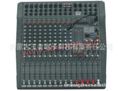 --·大中型型扩声系统的首选调台--·8路、10路、12路、16路、20路五款选择--·外置电源,话筒/线路选择开关,噪声极低--·模块式结构,工作稳定可靠--·输出包括两个左右主输出,两个编组输出,两个辅助发送及一个效果发送--·通道输入三段均衡,其中中音段具参量调节功能,使用方便,主输出双九段均衡--·数字式内置效果器,具参数断电记忆功能--·配LEDDJ灯--·+48V幻像电源单声道输入通道:平衡式话筒输入或线路输入--立体声输入通道:平衡或不平衡式立体声线路输入--频率响应:20Hz~20kHz+/-0.5dB(+4dB输出600Ω负载)--话筒输入灵敏度:-70dB~-20dB--增益范围:-25dB~+60dB--信噪比:≥95dB--失真度:≤0.02%(+4dB,1kHz)--均衡:高频:10kHz,中频:250-6kHz,低频:60Hz±15dB--最大输出:+20dB平衡;+16dB不平衡--效果器:16种数字延时--左右声道分离度:>91dB--电源:AC100~120V/200~240V50/60Hz--功耗:<30W