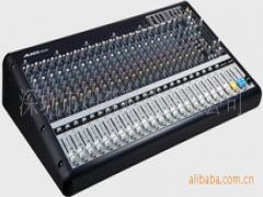 一、主要特点:·使用高精密电子零件,60mm日本推子,具有6路单声和2路立体声通道,并且具有分组式幻象电源开关,方便电 容话筒和动圈话筒同时使用时,防止给动圈话筒加电而导致声音失真。·均衡EQ插入选择开关,确保高保真声源的重放。100Hz 到8kHz的中频扫描,针对不同的人声进行调节,更加准确和方便。·调音台带有24Bit数字式效果器,32种独立效果,延时、重复可调,可适应不同声学环境。·每路输入、输出都带有独立的Insert插口,可精确的对需要调节的信号进行插入周边处理。·两路编组输出和3个辅助(AUX)输出口足以满足中小型扩声场合的使用。二、规格参数:| 工作电平 | Mic Input:30dBu;Line Input:21dBu;All other Input:22dBu | | 额定输出 | Main outs:+4dBu;All other outs:+4dBu;Maximum Output:20dBu | | 频率响应 | Mic Input To Main Output:+0,-1dB,<20Hz To 40kHz;+0,-3dB,<20Hz To 60kHz | | 连接电阻 | Mic Input:1k ohms;Line Input:>10k ohms;All other Input:>100 ohms | | 均衡EQ | Mono Channel EQ:High:12kHz;Mid:100Hz To 8kHz;Low:80HzStereo Channel EQ:High:12kHz;Mid:2.5kHz;Low:80Hz | | 通道 | 20Mono+2Stereo | | 通道均衡 | 3Band+Mid Sweep | | 辅助输出 | 3 | | 返回 | 2 | | 效果器 | 24Bit DSP | | 主输出 | 1Stereo | | 编组输出 | 2 | | 幻象供电 | 48V DC |