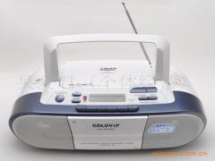 CD/MP3播放 CD-R/CD-RWDVD/VCD/SVCD/DVCD/CD/MP3/MP4编程播放功能DVD重复播放(一首或全部)USB/SDMMC/MS卡调频立体声/电视伴音/中波短波收音卡式磁带录音/立体声播放LCD液晶显示内置话筒 双话筒立体声耳机插座杜比数字双解码直流电12V(2号电池8节)产品描述▲DVD播放与重复功能,兼容CD-R/CD-RW▲DVD/VCD/SVCD/DVCD/CD/MP4/MP3编程功能▲DVD/VCD/SVCD/DVCD/CD记忆功能▲多功能遥控操作系统▲数码LED显示▲调频立体声/电视伴音/中波/短波接收▲卡式磁带录音/立体声放音▲同轴电缆输出▲立体声耳机插座▲直流电12V▲使用交流电(220V/50Hz)包装清单主机、红外线遥控器、电源线、莲花线、说明书、保修卡专业评论电源:交流电220V/50Hz 25W;直流电12V(大号电池*8)输出功率:2+2瓦带速:4.76cm/S ±3%抖晃:≤0.5%CD放音频响:31.5Hz-16kHz±3dB卡带放音频响:250Hz-6.3kHzCD信噪比:≥70dBCD取样频率:44.1kHz数模转换方式:16比特误差纠正方式:CIRC超强纠错频率范围:MW:530-1600kHzFM:76-108MHzSW:3.8-12MHzTV:3-5 CH遥控距离:8米遥控偏离角度:30度喇叭抗阻:4Ω+4Ω体积:350*255*135.5毫米重量:2.8公斤