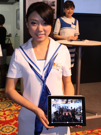 与上述9款摄像机同台亮相的还有佳能公司基于iPad的远程智能监控中心以及可视管理系统软件。借助于无线传输技术和iPad强大的移动计算能力,人们在走动中就能够观看监控摄像机拍摄下来的实时画面,其应用前景非常广阔。在博览会上,人们对基于iPad远程监控系统产生了浓厚的兴趣,纷纷向现场展示人员咨询相关信息。