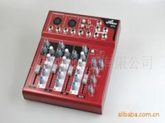 雅豪MT4/MT7系列调音台主要功能:配有XLR和LINE可切换输入全部通道设有3段EQ均衡设有附加效果处理的插入点双声道AUX辅助主线输出和输出.内置数码延时混音效果器,可调整延迟时间.提供可切换的+48V幻像电源,支持电容话简直接使用.平衡/不平衡录音及回放连接器带耳机放大器,可驱动各种高阻抗耳机.技术参数:噪声:-80dBu通道串音衰减度:〉-82dB频率响应:20Hz-20kHz +/-0.5Db总谐波失真:<0.03%@1kHz话筒最大输入电平:+16dBu线路最大输入电平:+30dBu立体声最大输入电平:+20dBu耳机输出(200Ω:300mWParametric EQ:高音:12kHz,+/-15dB中音:600kHz,+/-15dB低音:80Hz,+/-15dB1,话筒输入插口2,混音输入插口3,乐器信号输入插口4,立体声信号输入插口5,双声道录音机信号输入6,双声道录音机信号输出7,6.5MM耳机输出插口8,双声道总输出平衡接口9,EFF信号数字延时器或效果器输出10,立体声信号输出插口11,增益调整,调节该旋钮可实现话筒增益从-60dB到-20dB.12,声像定位分配控制,即左右声道平衡控制.13,三段均衡器14,辅助输出控制,辅助监听输出通道的电瓶大小.15,通道调整16,混响效果控制17,幻象电源开关18,电瓶信号指示19,效果反馈电瓶调整20,延时时间控制,调节该旋钮,可以改变延时时间.21,耳机监听音量调整22,辅助输出音量调整23,混项电瓶调整,可以调整最后的效果部分音量电瓶的大小.24,主信号输出控制产品配件:主机一台,音频信号线一条,镀金6.5转3.5转换头一个,中文说明书一份.本公司特别调制的红色,市场上唯一使用的色调.