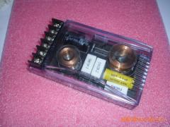2-Way CrossoverFrequency:3500HzSlopping ratio:12dBInput Power:100WImpedance:4 Ohm电感(inductance)是电子电路或装置的属性之一,指的是:当电流改变时,因电磁感应而产生抵抗电流改变的电动势(EMF,electromotiveforce)。电路中的任何电流,会产生磁场,磁场的磁通量又作用于电路上。依据楞次定律,此磁通会借由感应出的电压(反电动势)而倾向于抵抗电流的改变。磁通改变量对电流改变量的比值称为自感,自感通常也就直接称作是这个电路的电感。具有电感性的装置称为电感器(inductor,中文里一般也简称电感),电感器通常是一线圈,可以聚集磁场。(自感是互感的特例)电感在电路中的作用基本作用:滤波、振荡、延迟、陷波等形象说法:“通直流,阻交流”通直流:所谓通直流就是指在直流电路中,电感的作用就相当于一根导线,不起任何作用。阻交流:在交流电路中,电感会有阻抗,即XL,整个电路的电流会变小,对交流有一定的阻碍作用。细化解说:在电子线路中,电感线圈对交流有限流作用,它与电阻器或电容器能组成高通或低通滤波器、移相电路及谐振电路等;电感的作用是阻碍电流的变化,但是这种作用与电阻阻碍电流流通作用是有区别的。电阻阻碍电流流通作用是以消耗电能为其标志,而电感阻碍电流的变化则纯粹是不让电流变化,当电流增加时电感阻碍电流的增加,当电流减小时电感阻碍电流的减小。电感阻碍电流变化过程并不消耗电能,阻碍电流增加时它将电的能量以磁场的形式暂时储存起来,等到电流减小时它也将磁场的能量释放出来,以结果来说,就是阻碍电流的变化。