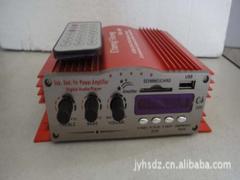 SH2000有FM收音、U盘/SD卡播放及外接音源三种模式。USB/SD插口可接U盘或SD卡,清淅播放MP3音频文件。FM调台可长按上下曲键自动调台或短按手动调台两种方式。按PLAY可自动调台并储存,使用方便。收音天线可半球型转动,可更清淅的搜台。数字显示屏使操作更方便。电源电压:DC12输出功率:80+80W信燥比:25BD