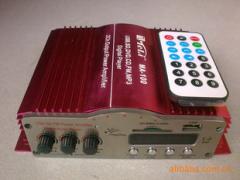 带遥控MA100超酷迷你读卡功放机/带FM收音支持U盘/SD卡等播放输入:12V2A以上颜色:红色功率:20WX2 (可带6寸音箱)FM频率范围-----87.5MHz--108MHz尺寸:165*145*45mm前面功能:高音、低音、开关带音量调节、遥控接收窗口、显示面板、USB/SD/MMC/CARD卡功能选择键.后面功能:两声道喇叭输出、DC12V输入、高品质AV插口.产品配件:包装盒、主机、遥控每箱:40台企业介绍 Company Profile 特力音响是一家专业从事现代影音设备生产的制造企业,产品涉及家庭影院系统的功放机、音箱、喇叭以及舞台音响设备(专业音响)、多媒体有源音箱、汽车音响等各个领域。本厂拥有自己独立的电子生产车间,车间全部采用具有先进水平的生产设备,同时严格按照质量管理体系进行全局跟踪管理。一条龙式的规模化大生产加上先进的企业管理模式确保了成本在下降、效益在增长。 我厂始终坚持以管理出效益、以质量求发展;始终坚持以科技兴业、以科技打造精品音响。我们汇聚了一批国内音响行业的优秀电子、电声工程师,每件产品从外观设计到工艺雕琢、从研发生产到质量把关都凝聚了专业人才的精心工作。强大的开发能力、出众的产品质量、完善的售后服务不仅赢得了众多的消费者,也成为国内不少知名企业指定的配套生产企业,同时还赢得了众多的海外OEM、ODM客户。 展望未来,特力人充满了必胜的信心,全体员工都时刻牢记“实实在在做人,认认真真做事”的企业宗旨,在各自的岗位上兢兢业业,诚恳工作,同时不断钻研以创新、不断学习以上进,为迎合公司大跨步发展而时刻努力着。Teli electron factory is aprofessional production enterprise that is engage in modern shadow sound equipment production,product the merit that is concerned with the system offamily cinema put machine,sound box,trumpet as well as stage acoustic equipment (professional acoustics),multi-media have every fields such as source sound box and automobile acoustics. This factory possesses self independent electronic production vehicle, workshop all adoptings have the production equipment of advanced level,at the same time carry oout overall situation strictly according to quality management system to trail management.The scale of the type of a connected sequence melt big production add advanced froup melt the pattern of business management have ensured cost in drop,benifitin increase. My factory insists to make benifit with management all along,begs to develop with quality;lnsist to hit with the mood trade of science and technology,with scienceand technology to make elaboration acoustics all along. Us have gathered together the excellent electronic,electroacoustic engineer of a batch of domestic acoustic profession,each product is carved from appearance design to technology,form research and develop production go to quality guard a pass to condense professional talentworkmeticulously.Powerful development ability,outstanding product quality and perfect post sale service have not only won numerous customer,also become the domestic supplemental production enterprise ofdesignated a lot of famous enterprises,have at the same time still won numerous overseas OEM and ODM customer. Look ahead into the future, Teli person have filled with surely the confidence of victory, all employee remenbers the enterprise purpose of "behave really,work carefully"constantly,on the post of each company,sincere work is atthe same time dug into continuously in order to creat study continuously more enter,to cater to company,try hard constantlyacross step development.