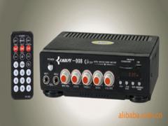 功放高质量的 RCA 输入输出座USB,SD,MMC卡音量LED光圈显示低音,平衡,音量控制 ,卡拉OK,两个MIC接口技术参数: 总谐波失真:<0.4%信噪比:75dB频率响应:29~18KHz失真度:<0.1(1KHz输出功率:RMS 20W X 2CH供电电压:18-24V DC功放输入:12V-2A,汽车,摩托车,mp3,家庭,音响发烧友均合用SNR:-100db输出:最大26w电流:20Hz-20KHz带收音(87-108MHz)高、低音控制,电源开关,七彩炫灯盐城市亿高电子有限公司一家集研发、生产、销售于一体的综合性生产企业,生产基地位于江苏省大丰市大中镇工业园兴业路36号,总占地面积约4000平方米,拥有先进的生产设备和优透的的专业技术人员。公司主营汽车音响,包括汽车功放、汽车MP3播放器、汽车DVD播放器、汽车MP5播放器、汽车USB/SD卡播放器等系列产品。公司本着诚信、实力和产品质量获得业界的认可。欢迎各界朋友莅临盐城市亿高电子有限公司参观、指导和业务洽谈。