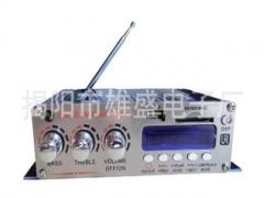 QQ:183921975联系电话:13434939321 13500165797▲采用汽车音响专用的功放模块,立体声放大;▲制作精美,落足本钱;USB/SD插口可接U盘或SD卡,清淅播放MP3音频文件。▲带4欧喇叭瞬时最大功率可达75W,动态好,音色美;▲带音量调节、高低音调节和电源开关,夹持式喇叭输出端子,输入同时有RCA(莲花插座)信号输入端子及3.5MP3插口;▲直流12V电源;▲尺寸:15.4CM*10CM*4.2CM;▲蓝/古铜色全铝合金外壳,豪华大气; 适合摩托车、汽车安装使用,也非常适合于作为个人音响或床头音响的功放使用。 配合CD、MD、MP3、MP4、ipod、MP3手机、卡带机等设备使用,是非常不错的选择!其它热销产品 本厂十多年来主要从事各种电源适配器、监控电源、音响器材的开发、设计、生产和销售。品样齐全、质量优、价格实惠。产品同时可来样定做、加工。