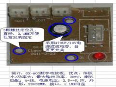超迷你数字功放板,采用XPT8403和PAM8403高效率数字功放芯片方案/10年新型高效数字功放,输入5V时获得[3 x 2]6W的功率,超薄型板子,可非常方便放入小塑料盒或其它设备的缝隙里,如打造MP3/4或笔记本外置小音箱等,任你想象,电源建议取USB的5V或用单节锂电供电。 《优点》:10年新出高效数字功放芯片,内部特殊输出处理电路,取消了传统的LC网络,比用LC的更低的EMI值!在较低电压下获得最大功率输出,超级省电,内置待机电子开关,内置高增益缓冲放大器,内置短路保护。《电源》:3.6至5.5V,单节锂电或USB供电适宜,也可用四节1.2V电池供电,用变压器供电一定要加5V稳压电路,超过5.5V芯片将烧坏。《参数》:电源:直流(DC):3.0V-5.5V输出功率:3W+3W(4欧)信噪比:90dB效率:>90%尺寸:28*32*mm 3颗螺丝定位孔《注意事项》:1:电源正负极不能接反,电源电压不能超过5.5V,这两条违规会致使IC损坏。2:片内有高增益缓冲器,不能改动板上任何元件参数,不符合的参数将导致IC损坏。3:输入线请尽量用带屏蔽的线,可以起到抗干扰作用,消除杂波电流声。4:输出为cmos管BTL驱动方式,左右喇叭的负极不能够接在一起,即接喇叭的4条线是完全独立的,不允许共接!