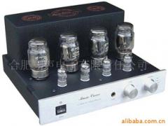 本机是在我公司深受好评的D-2020系列推挽胆机基础上改进而成的新款机型,具备5路信号输入切换功能:CD/DVD机、MM黑胶唱机、AUX线路、MP3/MP4播放器、电脑USB输入,另带耳机放大器功能。更多玩法,更多乐趣,更高性价比。本机末级使用四只KT100严格配对做推挽放大,该管音色细腻、自然流畅、声音醇厚,“胆”味很浓,不负众望。一代名管,烧界几乎无人不知无人不晓,受欢迎程度极高。本系列另有KT88、6550-B、EL34-B、FU-50、6P3P、6P13P等功率管型号,音色各有特点,可根据个人爱好选择最适合自己欣赏口味的管型。一、产品简介:●具有5路信号输入切换功能:MM唱盘(黑胶唱机)输入;AUX线路输入;CD/DVD输入;MP3/PC输入;USB输入。●自带RIAA补偿放大线路,可以驳接MM黑胶唱盘,满足您怀旧情结。●自带USB声卡解码器,可以直接连接电脑,屏蔽低档声卡(拔下本插头原声卡即恢复工作),欣赏硬盘里或者网上音乐节目,XP以上操作系统不需要安装驱动。●还可以将便携式播放器(如MP3、MP4等)及电脑声卡输出接本放大器作增音功率放大接驳音箱欣赏音乐。●自带耳机输出,可以接32Ω -600Ω不同阻抗的耳机独享音乐(耳机插入后,自动切断音箱)。●具有4Ω 、8Ω输出阻抗匹配选择开关,可根据自己的音箱阻抗选择最佳匹配。●具有110V、220V电源制式选择开关,可以适应多种电源制式。二、性能参数:●额定输出功率:35W×2(8Ω三级管接法)●频率响应: 20Hz~30kHz ±1db●总谐波失真:< 1%(1kHz)●输入灵敏度: 500mV -2000mV●输入阻抗:100KΩ●输出阻抗:4Ω 、8Ω●信噪比:89dB●前级用电子管:12AT7×2,12AU7×2, 功率管:KT100●体积(宽×高×深): 340×180×290mm (不含旋钮、接线柱等尺寸)●重量:约16Kg三,产品图片: