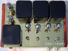 一.技术指标:输出功率:50W+50W信噪比:≥90分贝失真:〈1%(1KHZ5W时)灵敏度0.5V输入阻抗:100K输出阻抗:4欧,8欧频响:16Hz~35KHz(+-1分贝)重量:26KG功耗:180W二.用料:350W电源,5Z3PA*2,6N6T*2,6N3J*2,EL-34B*4,滤波为飞利蒲BC和摩罗利电解,铰链为FIRA0.33uf/630v*4,倒相为威马10+斯碧VQ,4H/500MA电感*1,ROE阴极电容,大红袍电阻,特富龙镀银信号线,Alps电位器,纯铜水晶接线柱。三.用料介绍:四.内部做工及细节五.售后服务:整机保修一年,终身提供技术支持。六.使用注意事项:1.收货后按产品提供说明插上所有管子;2.先接音箱连线,后接音频输入连线,最后插上电源线;3.确保连接正确情况下才打开电源开关;4.切勿在未接输出负载情况下开通电源;5.本机为三相电源插座,即可不带电,最好有接地线以确保使用安全;6.非专业人员请勿打开机箱后盖,内有高压,以免发生触电事故;7.开机后如果出现内部打火或冒烟情况,请立即关闭电源并联系我们。联系 我的网站http://中国胆机网.com淘宝网http://shop34379201.taobao.com/QQ:147898950电话:13016496945 肖成林传真:027-88607197