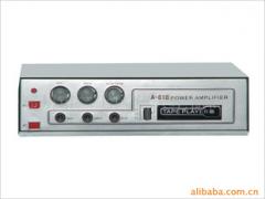 A-818扩音机交直流两用,直流12V供电,具有二路话筒输入,拾音输入及磁带放音等功能,采用进口高保真功放模块,定阻16Ω输出。外型尺寸:235*195*70mm