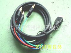 深圳市恩华进出口有限公司是专业生产/加工各种电脑周边连接线及设备连接线,承接各种特殊来料加工连接线订单,感谢新老顾客的惠顾,我们将一如既往为您提供最好的产品和服务!产品名称:HDMI/3RCA音视频线,HDMI转色差线产品描述:HDMI高清播放器到色差电视,HDMI转色差线3RCA全铜芯,接头镀金,专业生产,即插即用,信号稳定产品规格:1米HDMI转3RCA规格描述:HDMI-3RCA(5RCA)、DVI-3RCA(5RCA)、VGA-3RCA(5RCA)、线材规格:无氧铜导体、三根铜轴OD7.3(1芯缠绕2芯、2并、3并、5并等各种),可按客人要求抽线。产品颜色:可按要求,通常黑色\红白\红白黄\红绿蓝等应用范围:HDMI接口的高清播放器连接色差接口的液晶电视。前提是该高清播放器的HDMI接口,包括有色差的信号。产品优点: