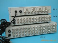 品牌:瑰丽型号:GL-202-16说明:16进32出视频分配器。16路视频信号输入,平均每路信号一分二。可把多路视频信号输入,分配成多路视频信号输出。本机适用于DVD.VCD.SVCD.多媒体电脑.录像机等.凡具有视频输出功能的任何设备都可作为本机信号源输入.是娱乐.电教.监控等系统.需要多路视频分配.放大必不可少的视频匹配设备.非常适用于长距离音视频分配传输.技术规格:视频输入:1路视频输出:16路视频增益:1dB频率响应:视频:10HZ~15MHZ输入电压:AC220V/50HZ视频连接器:BNC规格:332X210X75(mm)