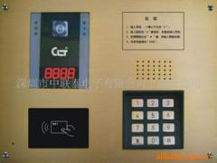 1.键盘带夜光,斜面键盘设计,豪华设计,外观精巧、气派2.高亮度数码管显示屏 3.1/3”黑白CCD摄像头具有自动感光功能,黑暗环境自动补光,明亮环境不会出现光斑。镜头角度可上下调节 4.住户独立密码开锁,可加上IC卡或指纹(ID卡)开锁模块(按需求选用)5.可呼叫住户或管理中心通话,遥控开锁6. 软编码形式:可随意编定住户楼层及房号 7.可在同一栋大厦不同入口各设一台,方便住户出入 8.数码IC记忆功能,停电时仍可保存本机资料不会丢失 9.最大容量连接999户,可加设多台副机同时使用(选用) 10.总线制布线,采用RS-485联网方式,布线简便技术参数:最大容量:999户通话时间:约3分钟直流电压:DC16V输出功率:≥100mW工作电流:≥250mA联网接线方式:RS-485待机电流:≥150mA摄像机:1/3”CCD面板尺寸:330X234(mm)后盖尺寸:320X224X54(mm)