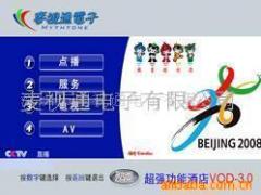 功 能 说 明 简 概l支持视频格式:MPEG1/2(VCD、DVD)MPEG4(AVI)l网络带宽速度达100Mbit/sl机顶盒可以自动从上次停止处继续播放(断点续传功能);l可根据酒店需要实行免费或按时间、播放次数等多种方式计费;l可与原有的酒店收费系统协同工作,将点播费用计入客房消费总帐;l机顶盒支持英文、简体中文、繁体中文,韩文,日文等多种语言。l通过VOD点播系统,客人在客房内通过数字机顶盒,使用遥控器,根据节目内容介绍、影片主要演员、导演等信息,可以随时方便快捷的查找到所喜欢的节目并进行点播。lVOD点播系统可以支持所有客房同时点播同一个节目或不同电影,客人可以随时进行快进、快退、暂停、声音控制大小.画中画切换等操作,支持标准的VCD、DVD .AVI电影。l真彩色的操作界面,可以自由选择不同风格、图片的操作界面;l适应不同酒店电视频道设备的需求,能将数字电视信号在机顶之间进行自由切换;l为酒店能把消息及时发送到每个客房,所以客人不管在是电视状态下还是VOD系统状态下都可以让客人看到最新消息,同时还在电视画面上加上漂亮的台标。也是做广告宣传的很好的方式机顶盒是多媒体播放机与网络的完美结合,既保留了家用DVD的所有播放功能和特点、延续了其稳定性和可靠性,还创造性的集成网络,支持网络播放,支持断点续传,并可在电视屏幕上叠加字幕(OSD)。它还提供扩展网络接口,点播的同时,不影响通过电脑上网娱乐。显著优点:l不受时间限制,客人可随时点播;