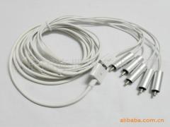 当你的苹果视频产品上有一部好的影片,就一定要拿出来让大家分享。再也不必很多人挤于电脑前,或挤于iPod/iphone 小小的屏幕上,使用 Apple Composite AV Cable 将 iPod 或 iPhone 连接至你的电视,而后将朋友聚在一起尽兴地欣赏大屏幕上的影片或幻灯片。你也可以连接 Composite AV Cable 至你的立体声音响或有源扬声器,使整个房间乐声悠扬。 苹果原装色差视频线——将iPhone/iPod上的视频转换到电视上直接播放.平常也可当成数据线来使用。 适用于:iPod video nano 3 classic touch以及苹果iPhone (3GS)手机。原装线材,不会存在仿线在新版本不能播放或者播放停顿.原装正品,支持任何破解版本的IPHONE ,3GS IPHONE,TOUCH 1,2代。至于CLASSIC, NANO 4代,完全不需要担心,破解版本不支持的问题。支持六房间等ONLINE网站,在线观看视频功能。收到货,只要用机子进入设置-通用-关于本机,就可以看到Apple Composite AV Cable的字样就绝对假不了色差视频线标配插头分别为:iPod 30 Pin接口,USB接口,以及二音频,三视频插头.可以让你实行边看边充电的功效,再也不必担心影片看到一半机子电量不足的问题出现.已测试,可用于3.0,3.1.2,3等最新版本和其它老版本,一代/3G/3GS的机型都可以使用!甚至是最新的IPAD都完美支持作为第一款苹果音频和视频输出分量线,以支持iphone和2007年底新出的ipod,可为nano3代,classic,iPod touch和iPhone提供视频音频输出,并同时提供一个连接充电器的USB插头。分量AV线共有5个视频插头和2个音频插头,一个USB插头。iPod touch和iPhone输出最高可以达到480i,nano3和classic输出最高可以达到480p。使用 Apple Composite AV Cable 将 iPod 或 iPhone 连接至你的电视,而后将朋友聚在一起尽兴地欣赏大屏幕上的影片或幻灯片。你也可以连接 Composite AV Cable 至你的立体声音响或有源扬声器,使整个房间乐声悠扬。通过30针的基座接口可将Composite AV Cable 连接至你的 iPod、iPhone 或 Universal Dock,也可通过复合 (Y、Pb 和 Pr) 视频及红/白类比音频端口连接至你的电视、家庭影院接收器或立体声音响接收器。该线缆还具有 USB 接口,方便你插入像电脑或附带的 USB Power Adapter 等电源。注意:iPod nano (第三代)和 iPod classic 支持分辨率为 480p 或 576p 的复合视频输出至电视,iPod touch 和 iPhone 支持分辨率为 480i 或 576i 的复合视频输出至电视。