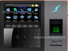 特别强调: 系统默认为ZKFace7.0算法(最新人脸识别算法,更快,更准确),指纹容量为2000枚,人脸400张,储存容量100000条,无需分组;可自由 切换至ZKFace5.0算法,即指纹容量3000枚,人脸700张,储存容量100000条,需分组。切换方式为:【菜单】[在左上角]→【系统设置】→【人脸参数】→【算法版本】[默认为7.0,按下即可切换为5.0]更改算法版本需重新启动考勤机才能生效,算法版本不兼容,故请买家根据实际情况选择统一的算法版本!iFace702是中控科技继 IFACE101/102、IFACE301/302、IFACE501/502后,于2010年8月又推出的两款指纹+面部、面部+RFID的混合型考 勤终端。该产品采用了中控科技最新的ZEM600平台,ZKFinger10.0混合型生物识别算法,容量大,识别精准快速,集成夜视红外光学摄像头。该 系列产品符合人体工程学的外观设计,工业设计由德国专业设计公司主导完成,模具采用了PC材料+蚀纹工艺+镜面工艺,采集比对就如照镜子一般,标配4.3 寸全触摸TFT,TCP/IP通讯,仅有8个状态功能键,其它按键在TFT上全触摸操作。该系列产品可选配外接定时响铃,后备电池,GPRS等功能。技术参数(此款配指纹使用,注意区别)·处理器:Multi-Bio 600·硬件平台:ZEM600多媒体开发平台·摄像头:高清晰红外摄像头·显示屏:4.3英寸触摸屏·面部识别容量:400张脸(7.0算法,识别高)·指纹容量:2000·记录容量:100000条·后备电池:2000mAh·通讯方式:TCP/IP, RS232/485, USB-HOST:两个USB-host接口·考勤功能:外接定时响铃、夏令时、记录查询、工作代码、短消息·门禁功能:简单门禁功能(门磁、锁控、出门开关、Wiegand输出),可选配专业门禁功能·其它可选功能:GPRS,串口打印, Mifare卡, HID卡, iClass卡等·电源:12V 3A产品优势·符合人体工程学外观设计·全触摸屏,操作方便,界面简洁时尚·常用6个功能键,可用户自定义·红外光学系统,对环境适应能力强,夜间仍可识别·后备电池,外部电源断电情况下仍可工作4-5小时·简单门禁功能(门磁、出门开关、锁控、Wiegand输出),可选专业门禁功能·可选配GPRS通讯方式,免于布线,方便安装·TCP/IP通讯方式,U盘·webserver管理模式与PC软件管理模式相结合,更灵活·可外接定时响铃·指纹与面部识别相结合,彻底解决单个生物识别应用的局限性·ZKFinger10.0指纹面部混合识别算法·ZEM600多媒体开发平台,容量大,速度快·Multi-Bio600高速处理器安装注意事项·推荐安装高度为镜头中心点距离地面1.2m;·安装位置应避免阳光直射,推荐放置于光线较暗的区域,以提高识别效果;·安装后,请不要擅自移动机器的位置与高度,以保证最佳的识别效果。如果移动机器位置,请确保镜头中心点距离地面的高度不变;·确保面部识别机与采集比对点之间的距离在50-70cm之间·登记时保持自然状态,双眼注视屏幕;·轻微调整面部与机器间的角度,采集更多不同角度的图像,以达到最佳的识别效果;备注:红色字体均为客户自选配置