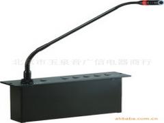 主席单元(HT-3100c HT-3100Sc)● 频率响应:100Hz—16KHz●灵敏度:—44dB±2dB●参考讲话距离:20-120cm●咪管长度:390mm●外观尺寸:215x55x105mm●嵌入孔尺:195x40mm●净重:0.9kg●嵌入式安装,可拔插双软咪管●采用全新数控化设计●具有麦克风具有发言键与指示灯,可控制/指示本机状态●单指向性,具防气爆音功能,配有防风防护罩●具主席优先控制按键,可启动系统提示音提醒出席人员注意,可设永久终止或暂停终止所有发言代表麦克风的发言状态●系统中主席单元数量不受限制,并可置于回路中任意位置●系统中主席单元不受限制功能的限制●可绕式电容麦克风,并具有发言指示光环●麦克风灵敏度高●单元由系统主机供电,输入电压18V属安全范围●具有自动机功能,开启的麦克风在没有拾音的状态下(拾音范围内声音低于50dB时)45秒将自动关闭●单元采用8芯线“T”型连接●HT-3100Sc具有自动视像跟踪功能●具有五键表决功能●配一条麦克风单元连接线●符合国际会议设备电器认证标准(IEC 60914)及国际安规标准UL或CE认证 配套代表单元(HT-3100d HT-3100Sd)●频率响应:100Hz—16KHz●灵敏度:—44dB±2dB●参考讲话距离:20-120cm●咪管长度:390mm●外观尺寸:215x55x105mm●嵌入孔尺寸:195x40mm●净重:0.9kg●嵌入式安装,可拔插双软咪管●采用全新数控化设计●具有麦克风具有发言键与指示灯,可控制/指示本机状态●单指向性,具防气爆音功能,配有防风防护罩●可绕式电容麦克风杆,并具有发言指示光环●麦克风灵敏度高●单元由统主机供电,输入电压18V属安全范围●具有自动机功能,开启的麦克风在没有拾音的状态下(拾音范围内声音低于50dB时)45秒将自动关闭●单元采用8芯线“T”型连接●HT-3100Sd具有自动视像跟踪功能●具有五键表决功能●配一条麦克风单元连接线●符合国际会议设备电器认证标准(IEC 60914)及国际安规标准UL或CE认证 嵌入式列席单元的安装说明:●按照所选购单元的开孔尺寸及座位距离在会议桌上开好孔●将线路布好,从嵌入孔里拿出分机线1.5m端的公头与列席机的母座接好●将列席单元装入嵌入孔,打好固定螺丝钉 推荐使用HT-3300主控机配套使用