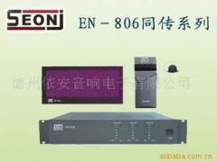 采用耳罩式耳机监听系统主机EN-8800最多可连接5台翻译单元进行六种语种的同声传译(包括原声通道)自带音量调节旋钮,可自由调节监听音量大小两个耳机插口:一个为原音通道——译员通过这个插孔收听进行翻译,一个为监听通道——用来监听译员自己的译音是否正常输出操作简单:只需按下通道输出按键便可以设置译音输出通道 ,无需太多的繁琐的设置;连接耳机,调节适合的竟是翻译人员只需按下话筒开启开关便可以发言具有消咳按键:即当翻译人员想咳嗽时,只需按下消咳按键(COUGHCUT)便可以将输出信号暂时切断而无需将话筒关闭带液晶显示屏,可显示当前的监听语种通道以及译音输出通道,并可显示当前本机的操作信息