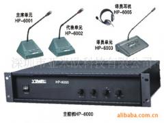 全数码同声传译系统中央处理器系统说明:■采用数字式设计,符合3C/CE/IEC60914多项国际标准■系统可抗8000V静电干扰,符合GB/T17618-1998国际标准■系统能同时处理六种语言,互不串音,互不干扰■内置高性能CPU为核心,系统稳定,运算快捷■会议单元由系统主机供电,工作电压为直流24V■采用一线式手拉手模式连接会议单元,便于安装和维护■四路会议单元输出端口,可连接5台译员单元■配置电话耦合器可进行远程电话会议■具备多种音频信号输入输出方式:★具有2个RCA输入端口,可输入外部音频信号★具有6个独立通道的RCA输出端口,可连接会议扩展设备进行放大输出,可连接卡座硬盘录象机等进行录音,更可连接红外语言分配主机,作六个不同通道的信号输入★具有1路手持麦克风接口,并有独立电平调节★数量限制功能,同时打开的单元数量可设置为1/3/6个★先进先出功能,同时打开的单元数量达到1/3/6个后,已经打开的单元被后来打开的单元关闭(FIFO)■外型尺寸(长*宽*高):430*325*99MM;颜色:经典蓝主席/代表单元/译员单元HP-6001/6002/6003■精美典雅台面式结构,符合人体工程学,简约大方■内置高性能CPU,数字化设计,符合IEC0914国际标准■单元为无源设备,由系统主机供电,输入电压为24V■鹅颈式话筒,高指向性驻极体麦克风,发言红光环指示■单元具有双色高亮LED单元状态指示灯■操作简单,只需轻按一个按键便可以发言■内置高保真扬声器,语言清晰,并具有音量调节旋钮■当打开话筒后,扬声器自动关闭,有效防止啸叫■两个3.5MM单声道耳机接口,音量可自由调节■单元自带2.5米13芯屏蔽连接电缆,降低强电磁波的干扰■单元自带13芯屏蔽接口,手拉手连接,便于安装和维护■主席单元具有代表的所有功能外,还可实现以下会议控制功能:★具有发言优先权,不受发言人数限制★可以切断正在发言的代表,全权控制会议秩序★主席单元的连接位置不受限制,可串在线路的任意位置★一套系统可以配置多台主席单元■外型尺寸(长*宽*高):100*140*70■颜色:墨绿