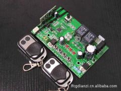 BT11-10-09型直流电机正反转遥控板,车库门控制板适用品牌:采用电子限位(机械限位两种功能)方式的各品牌翻板车库门(标配2只遥控器)产品标配:一块电路板,2只遥控器,一根测速线,安装、调试说明书翻板车库门常见限位方式有两种(所谓限位方式就是固定开门位置和关门位置所采用的方式)1.电子限位方式:也是使用最为广泛的一种,通过电机主板按键调节开门位置和关门位置2.机械限位方式:通过限位调节旋钮进行手动旋转调节开、关门位置宝贝功能详情:1.电子限位功能:使用霍尔元件采集电机运转长度和限位,安装方便,使用可靠;2.手动功能:单键循环控制;3.遥控功能:左键为控制键,单键循环控制,右键为解锁键;4.自动加锁功能:自动加锁功能开启后,门体运行到下限位以后2秒钟自动加锁;5.遇阻检测功能:开门遇阻停止,关门遇阻反弹约20厘米以后停止,关门软结束时遇阻停止;8.礼貌灯功能:电机每次停止后,礼貌灯延时2分50秒后熄灭。上图为电子限位接线图上图为机械限位接线图宝贝技术参数:1. 控制板输入电压:AC24V/50Hz2. 控制板静态功耗:≤1W3. 电机:额定电压:DC24V 最大功率:50W4. 遥控器工作电压:DC12V(电池供电)5. 遥控器功耗:工作电流≤12mA6. 遥控器发射频率:433MHz7. 空阔地发射距离:50米8. 工作温度:-20℃~+55℃联系方式及购买注意事项在您决定选购本公司产品后,如从银行汇款请您将您需要的物品名称、数量、您的详细地址、邮政编码、联系电话(最好手机)等通过E-mail、手机短信等形式及时通知我公司,以便及时处理。报价不含税及运费,开票加6%的税款。河北省廊坊市百特电子有限公司www.03162693852.com QQ:1085610215地址:河北省廊坊市常甫路钢盛里1-3-402邮编:065000总经理:王鹏电话:0316-2693852 传真:0316-7938189 手机:13931635202开户行:廊坊市商业银行康庄道支行户 名:廊坊市百特电子有限公司帐 号:31307070000120109030532农行卡号:95599 8100 08050 31316 户名:王鹏建行卡号:4367 4202 1027 8020 975 户名:王鹏邮政卡号:6221 8814 6000 0162 830 户名:王鹏工商卡号:6222 0204 1000 0536 608 户名:王鹏